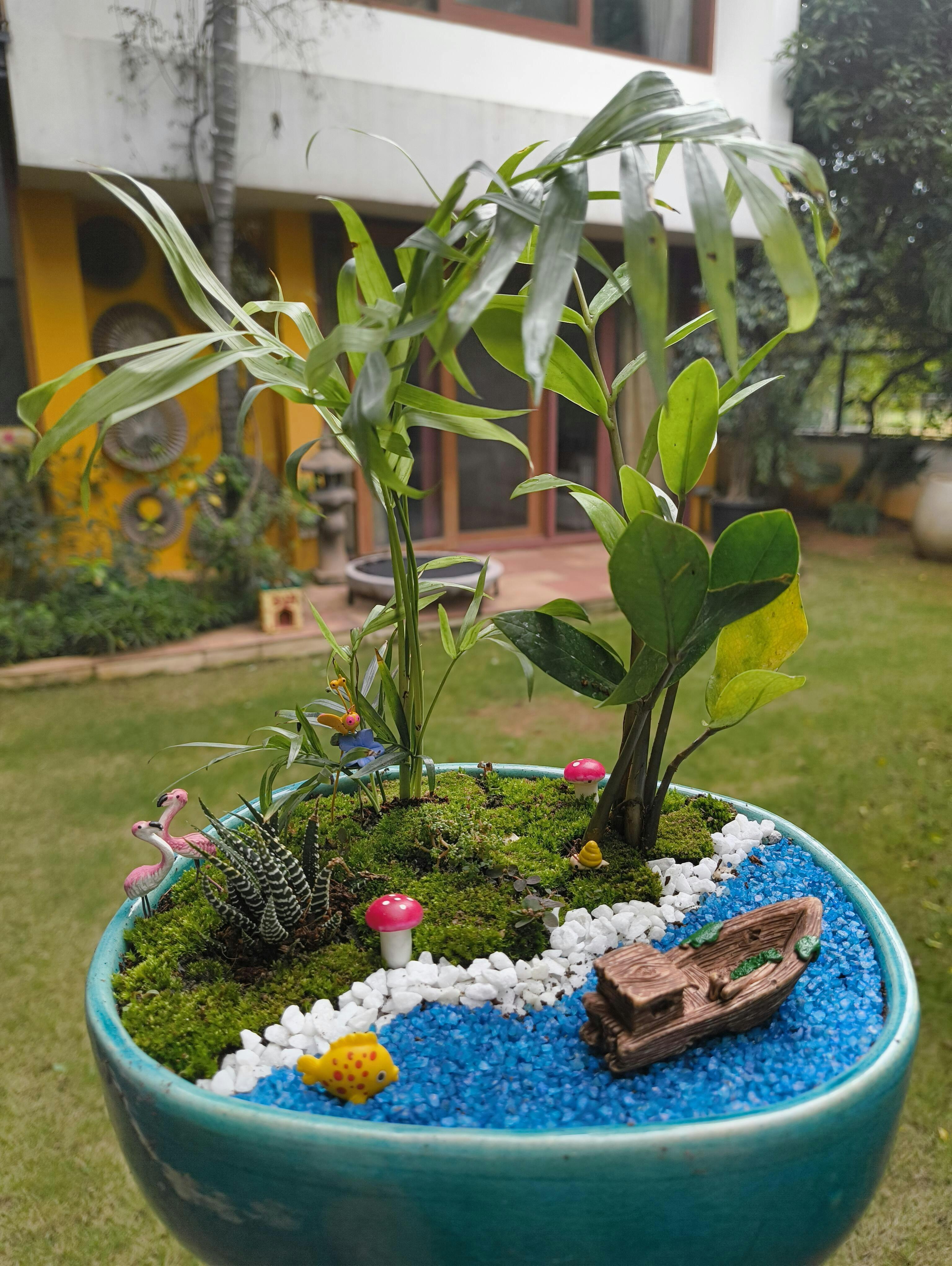 DIY kit includes planters, plants, colored chips and miniature toys. Instructions will be provided.